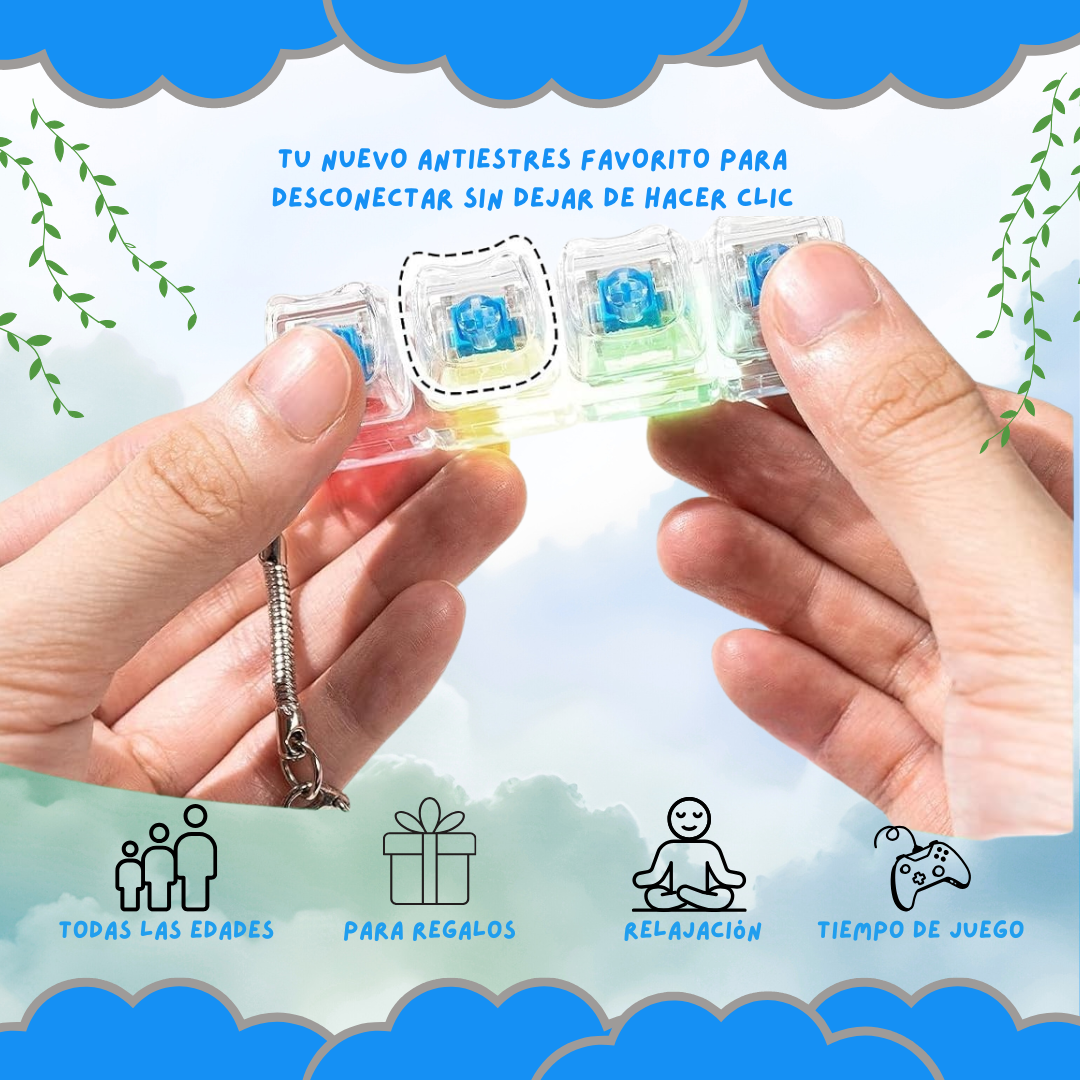 SatisKey es un mini teclado de 4 teclas con luces LED y sonido mecánico diseñado para ayudarte a liberar estrés, ansiedad o nervios con cada clic. No necesita conexión ni instalación: es puro placer sensorial.